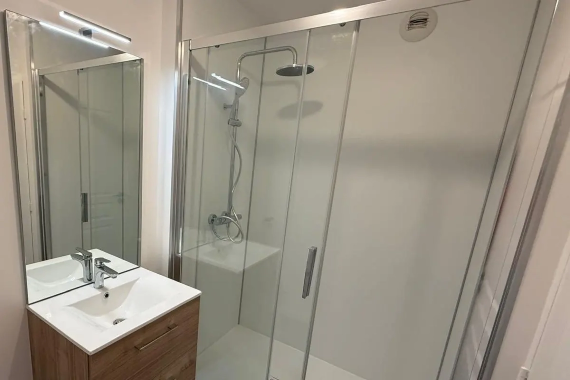 Rénovation d’un appartement à Amiens Par Ocordo 24 septembre 2025 24 septembre 2025 2,6K Date de réalisation 06/2025 Durée du chantier 1 mois Lieu Amiens L’agence de travaux Ocordo Amiens a finalisé un projet de rénovation intérieure d’un logement situé à Amiens (80000). Le projet avait pour but de moderniser les pièces de vie, de rafraîchir l’ensemble et d’optimiser le confort au quotidien.Un projet complet a été mené en plusieurs étapes, depuis une dépose ciblée dans les pièces d’eau jusqu’aux finitions soignées. Les artisans du réseau Ocordo Travaux ont coordonné les interventions afin d’offrir des espaces plus lumineux, pratiques et agréables à vivre.Une salle de bain repensée pour le confortLa salle de bain a été entièrement remise au goût du jour : création d’un habillage pour la future colonne de douche, installation d’une douche spacieuse 140×90, d’une paroi coulissante et d’une colonne thermostatique, ainsi que d’un meuble sous-vasque avec miroir. Des panneaux muraux décoratifs ont été posés pour une finition durable et facile d’entretien.Un coin WC fonctionnelDans les WC, les artisans du réseau Ocordo Travaux ont ajouté un meuble lave-mains avec mitigeur et mis en place un nouvel ensemble WC pour un usage plus confortable et un entretien simplifié.Peinture et finitionsUn grand rafraîchissement peinture a été réalisé : environ 115 m² de murs en blanc velours, 45 m² de plafonds en blanc mat avec reprise des petites imperfections, ainsi que la remise en peinture des portes intérieures. L’ensemble apporte une uniformité visuelle et une réelle impression d’espace.Sols et plinthesPour donner une allure contemporaine et résistante, un revêtement de sol PVC rigide a été posé sur 47 m², complété par des plinthes blanches de 10 cm pour souligner les volumes et protéger les bas de murs.Électricité remise au propreLes artisans du réseau Ocordo Travaux ont remplacé prises et interrupteurs et posé une porte de tableau adaptée pour une présentation nette et sécurisée de l’installation.Une cuisine prête à vivreLa cuisine a été fournie et posée avec des meubles neufs (façades blanc mat avec amortisseurs), un plan de travail bois clair, une hotte, un évier avec mitigeur, ainsi que de l’électroménager (plaque vitrocéramique et réfrigérateur), pour un espace pratique et cohérent avec le reste du logement.Vous avez un projet de rénovation à Amiens ?Les équipes Ocordo Travaux Amiens vous accompagnent dans vos projets de rénovation intérieure, aménagement de logement ou remise à neuf complète. Contactez-nous pour un devis gratuit adapté à vos besoins. Découvrir l'agence d'Amiens Autres réalisations Rénovation d’une maison à Amiens Rénovation d’un appartement à Nantes Rénovation extérieure d’une maison à Châtelaillon-Plage Rénovation intérieur d’une maison à Longeneau Rénovation d’un vieil appartement à Reims Transformation intérieure à Reims Transformation intérieure à Reims Rénovation d’un studio à Reims Rénovation d’une maison à Rilly-la-Montagne Rénovation des bureaux de la gendarmerie de Reims