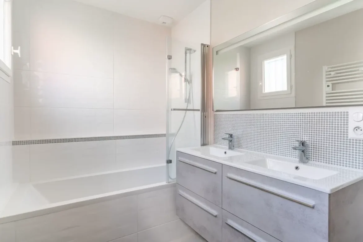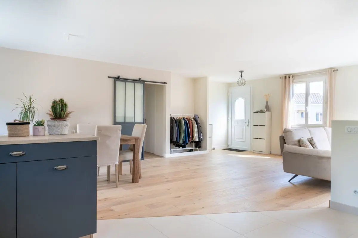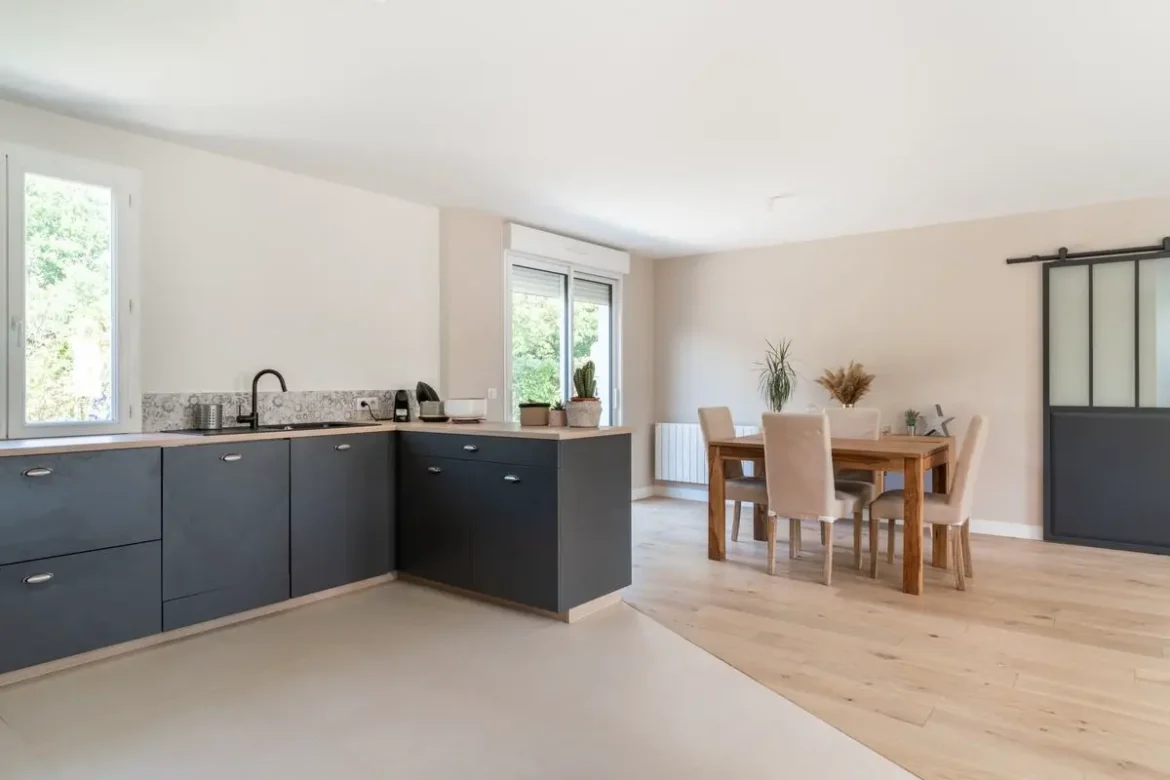Rénovation intérieure d’une maison située à Vertou Par Ocordo 24 octobre 2024 24 octobre 2024 2,1K Date de réalisation 10/2023 Durée du chantier 2 mois Lieu Vertou Découvrez la nouvelle rénovation intérieure d’une maison située à Vertou Ocordo Travaux Nantes a récemment mené à bien un projet de rénovation intérieure dans une maison à Vertou. Cette transformation a permis de moderniser et de rafraîchir différents espaces de la maison, grâce à l’intervention de plusieurs corps de métier. Du changement de sol aux travaux d’électricité et de plomberie, nos artisans ont su allier savoir-faire et précision pour un résultat optimal, satisfaisant les attentes des propriétaires !Rénovation des solsL’un des points forts de cette rénovation a été le remplacement complet des sols de la maison.Nos artisans spécialistes ont posé un nouveau revêtement, apportant à la fois confort et esthétisme à la maison.Le choix du matériau a été crucial ! En effet, dans le séjour, le parquet choisi permet d’apporter lumière et chaleur grâce à la teinte du bois. Mais ce n’est pas tout ! Dans la cuisine, un autre revêtement à été posé afin de délimiter clairement les deux espaces.PeinturePour donner un coup de neuf aux intérieurs, des travaux de peinture ont été réalisés dans l’ensemble de la maison. Les murs et les plafonds ont été repeints avec soin par les peintres professionnels et locaux du réseau Ocordo Nantes.Ces travaux apportent de l’éclat aux espaces, mais aussi une ambiance plus lumineuse et chaleureuse à l’intérieur de la maison. En effet, les couleurs choisies ne sont pas sans hasard ! Le beige sur les murs apporte du contraste avec les plafonds blancs, mais aussi avec les divers éléments anthracite du séjour.De plus, les murs de la cuisine ont été peints d’une autre couleur pour délimiter davantage cette pièce du reste de la pièce à vivre.PlâtrerieDes travaux de plâtrerie ont également été effectués pour améliorer l’isolation des murs et préparer les surfaces avant la mise en peinture. Ces interventions ont permis de rendre les murs plus lisses et d’améliorer l’efficacité énergétique du logement.ÉlectricitéL’installation électrique a été complètement remise à jour par les électriciens adhérents au réseau Ocordo. Ces travaux ont été essentiels permettant à cette maison de répondre aux normes actuelles, garantissant ainsi la sécurité des occupants.PlomberieDe la même manière, les plombiers sont intervenus afin de moderniser les installations sanitaires et d’améliorer le réseau d’eau de cette habitation. Désormais, cette maison apporte un confort optimal dans les pièces comme la cuisine et la salle de bains à ses propriétaires.Grâce à l’intervention coordonnée des artisans du réseau Ocordo Travaux, cette maison à Vertou a bénéficié d’une rénovation intérieure complète et de qualité.Si vous avez un projet similaire, n’hésitez pas à contacter notre agence de Nantes.Notre équipe est à votre écoute pour votre projet, qu’il s’agisse d’une rénovation ou de la création d’une extension ! Découvrir l'agence de Nantes Autres réalisations Rénovation d’une maison à Amiens Rénovation d’un appartement à Nantes Rénovation extérieure d’une maison à Châtelaillon-Plage Rénovation intérieur d’une maison à Longeneau Rénovation d’un appartement à Amiens Rénovation d’un vieil appartement à Reims Transformation intérieure à Reims Transformation intérieure à Reims Rénovation d’un studio à Reims Rénovation d’une maison à Rilly-la-Montagne
